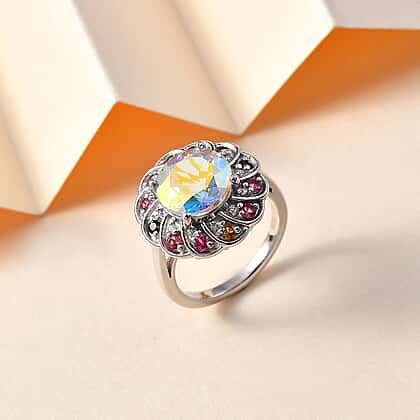 - Floral ring crafted with 21 gemstones including the Mercury Mystic Topaz centrepiece