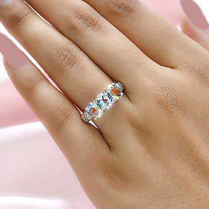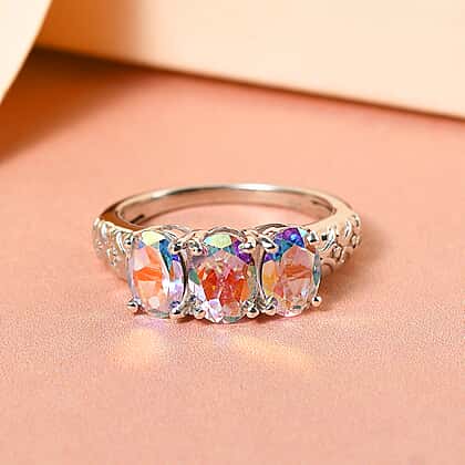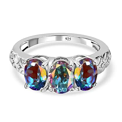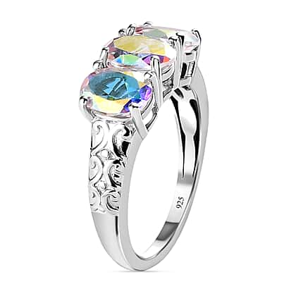 Mercury Mystic Topaz Trilogy Ring in Platinum Overlay Sterling Silver 2.71 Ct.