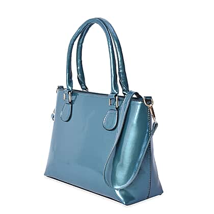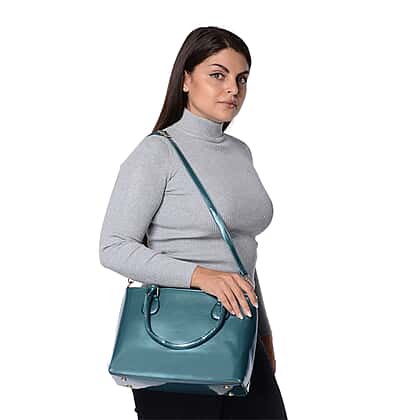 Metallic Teal Green Colour Tote Bag with Detachable Shoulder Strap and Zipper Closure (Size 48x24x11.5 Cm)