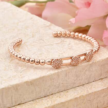 The beauty of this floral bangle lies in its versatility. It can be worn with any outfit and will undoubtedly create a chic look keeping you ahead of the trends. The cubic zirconia stones are an inexpensive alternative to diamonds, but they don't compromise on style or quality. The brass material used in the bangle makes it durable. The flowers in the frame are movable and set in rose gold tone.