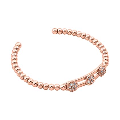 Milan Close Out - Simulated Diamond 3 Moveable Flower Bangle (Size 6.75 Inch) in Rose Gold Tone