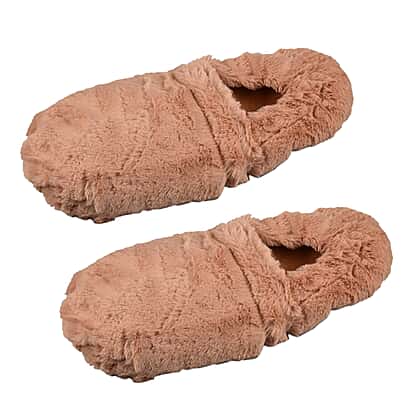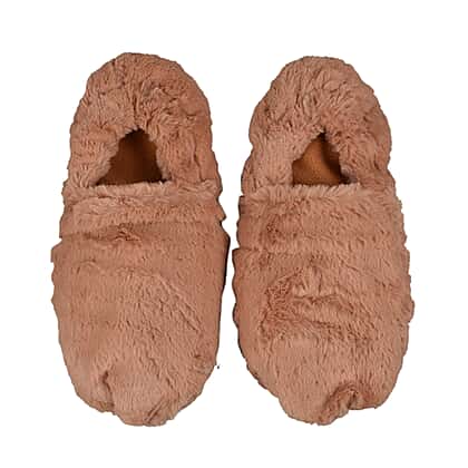 Mircowavebale Heated Beige Slippers filled with Natural Wheat Grains and Lavender Scent (One size, 6-10)
