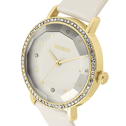 - DIAL: This watch has an white analogue dial, studded with stones on a white base and stones set on the bezel on this watch