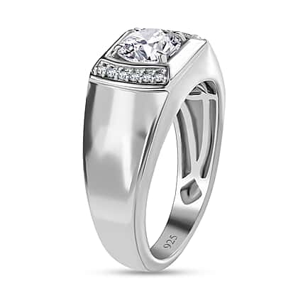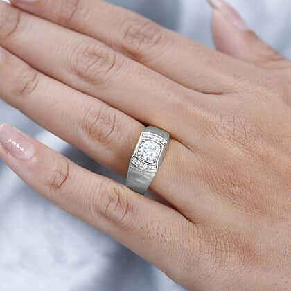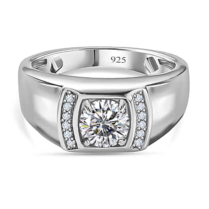 Moissanite Mens Ring in Platinum Overlay Sterling Silver 0.99 ct, Silver Wt. 5.31 Gms 0.990 Ct.
