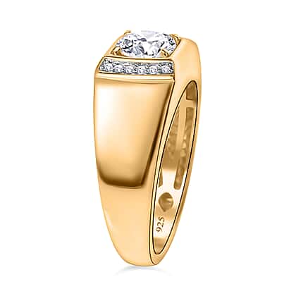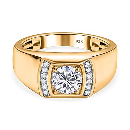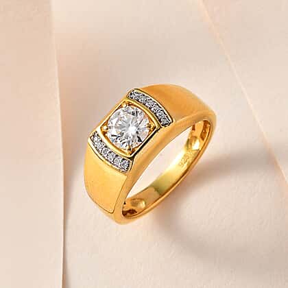 Moissanite Mens Ring in 18K Vermeil YG Plated Sterling Silver