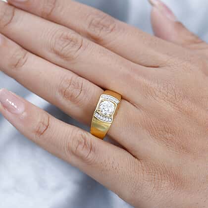 Moissanite Mens Ring in Vermeil YG Sterling Silver 1.27 ct, Silver Wt. 5 Gms 0.990 Ct.