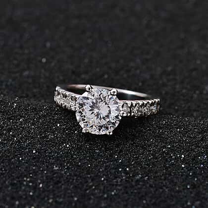 Moissanite (120 Facets) Ring in Platinum Overlay Sterling Silver 2.96 Ct.