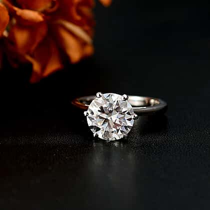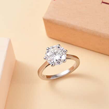 Moissanite (120 facets) Solitaire Ring in Rhodium Overlay Sterling Silver 3 Ct