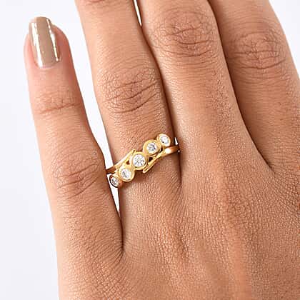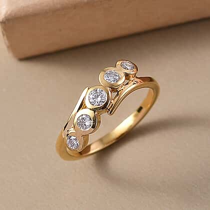 Moissanite 5 Stone Ring in 14K Yellow Gold Sterling Silver