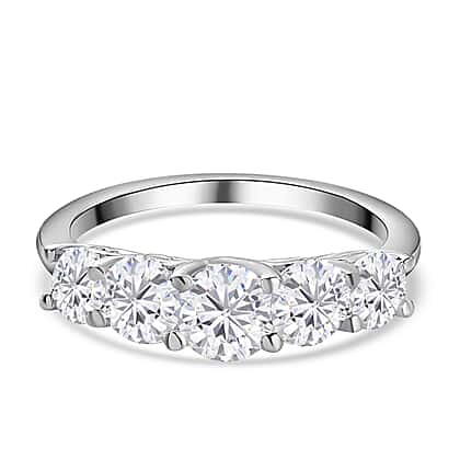 Moissanite 5-Stone Half Eternity Ring in Platinum Plated Sterling Silver