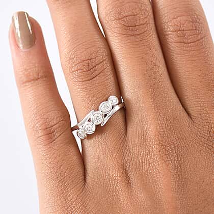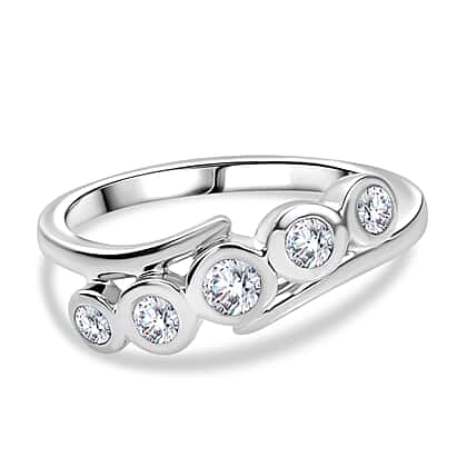 Moissanite 5 Stone Ring in Platinum Overlay Sterling Silver