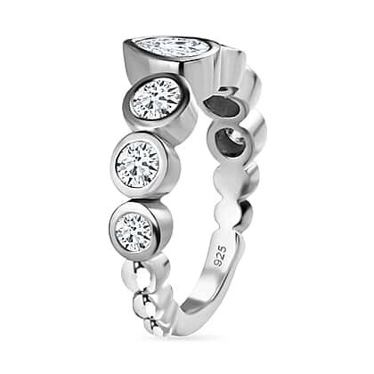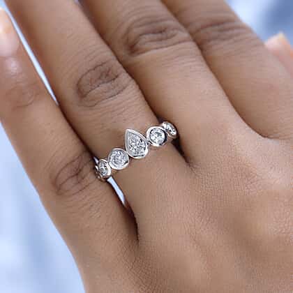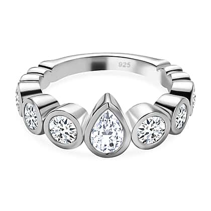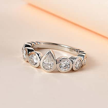 Moissanite 7 Stone Band Ring in Platinum Overlay Sterling Silver 1.36 Ct.