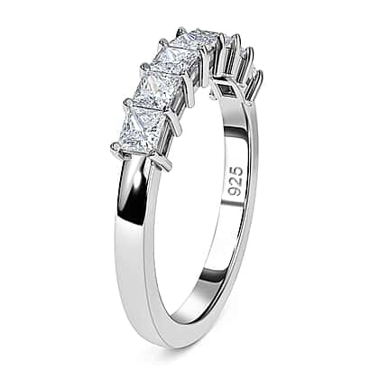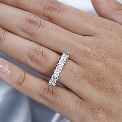 Moissanite 7 Stone Ring in Platinum Overlay Sterling Silver 1.68 Ct.