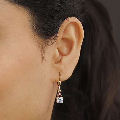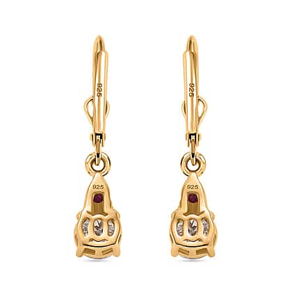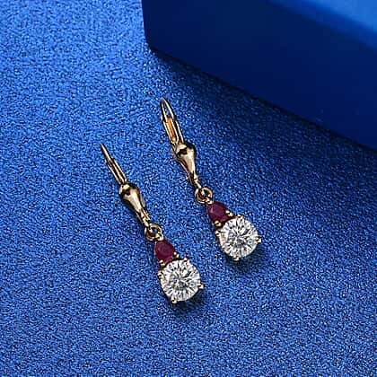 Moissanite & African Ruby Solitaire Lever Back Earring in 18K Vermeil Yellow Gold Plated Sterling Silver 1.94 Ct.