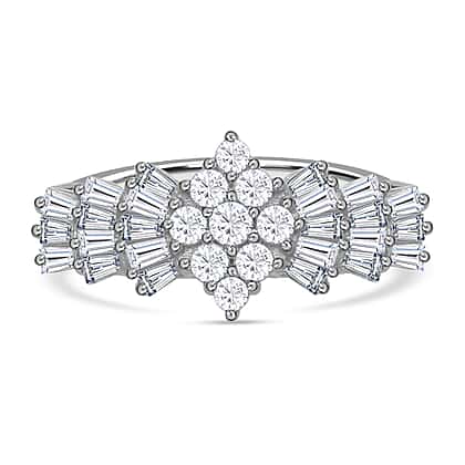 Moissanite Ballerina Ring in Rhodium Overlay Sterling Silver 1.29 Ct.