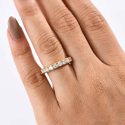 Moissanite Band Ring in 18K Vermeil Yellow Gold Plated Sterling Silver 0.96 Ct.