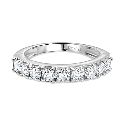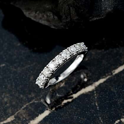 Moissanite Band Ring in Rhodium Overlay Sterling Silver 0.96 Ct.