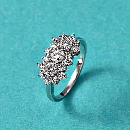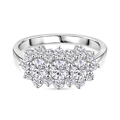 Moissanite Boat Ring in Rhodium Overlay Sterling Silver 1.30 Ct.