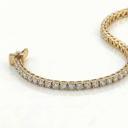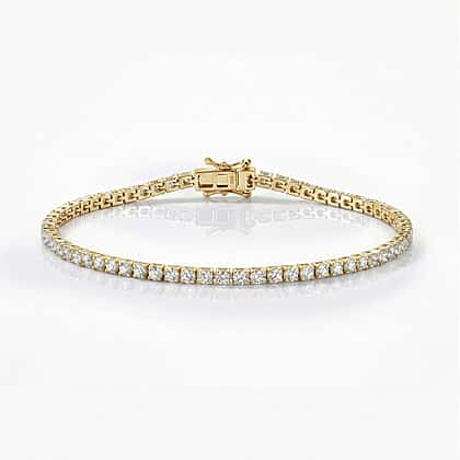 Let your style shine brighter with this 8-inch moissanite tennis bracelet in luxurious 18K vermeil yellow gold over sterling silver. The extended length provides a more relaxed drape on the wrist while maintaining the refined symmetry of the timeless tennis bracelet design. Each of the 58 moissanite stones reflect light with intense sparkle and clarity—offering a striking, ethical alternative to traditional diamonds. The bracelet is made with 925 sterling silver, loved for its strength and skin-friendly nature, and finished in tarnish-resistant 18K gold vermeil for lasting appeal. Elegant and versatile, it’s secured with a polished box clasp and arrives in a premium presentation box.