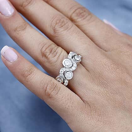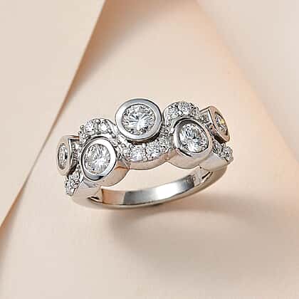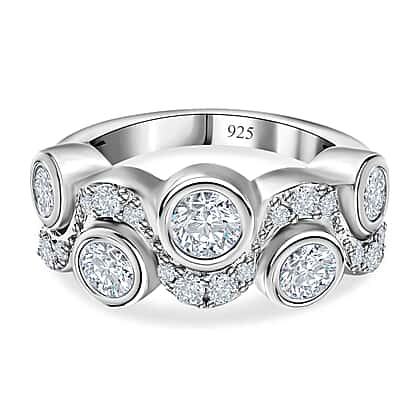 Moissanite Bubble Ring in Platinum Overlay Sterling Silver 1.39 Ct.
