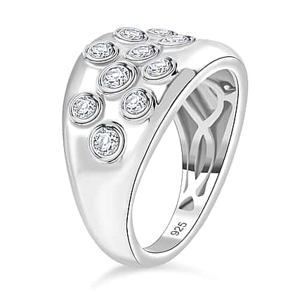 This Moissanite Bubble Ring in Rhodium Overlay Sterling Silver will make your day when you are stepping out for a party or a coffee date. Every single piece of round white moissanite is secured by a bezel setting that lends them the look of sparkling stars inside a cosmic bubble. The silver frame offers a complementing backdrop to the white gemstones.