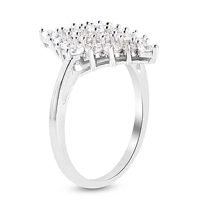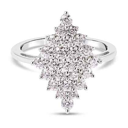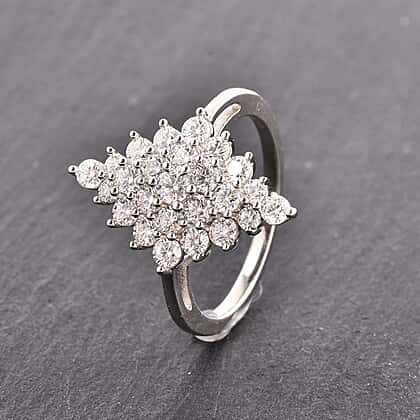 Moissanite Cluster Ring in Rhodium Overlay Sterling Silver 1.50 Ct
