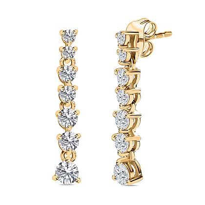 Moissanite Dangle Earrings in 18K Yellow Gold Vermeil Plated Sterling Silver 1.08 Ct.