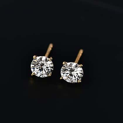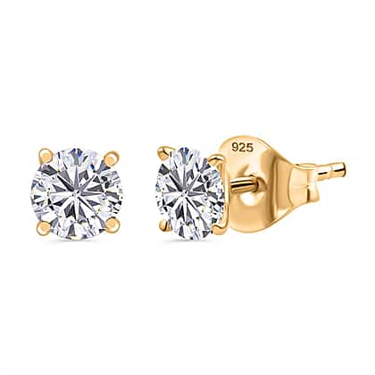 Moissanite Solitaire Stud Earrings in 18K Vermeil Yellow Gold Plated Sterling Silver