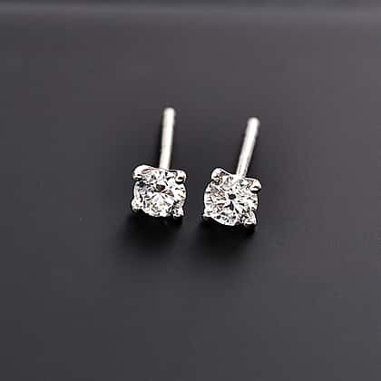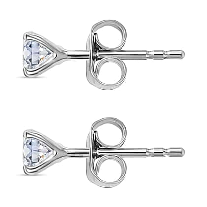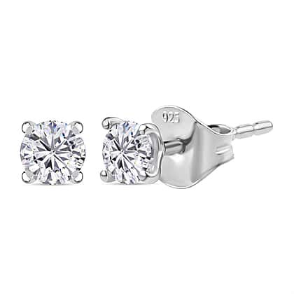 Moissanite Solitaire Stud Earrings in Rhodium Overlay Sterling Silver