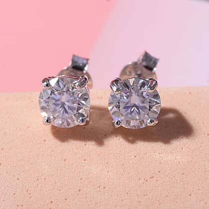 Moissanite Earring with Push Back in Rhodium Overlay Sterling Silver 1.51 Ct.