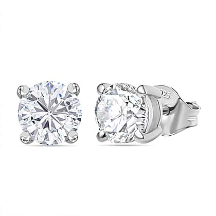 Moissanite Solitaire Stud Earrings in Rhodium Overlay Sterling Silver 1.88 Ct.