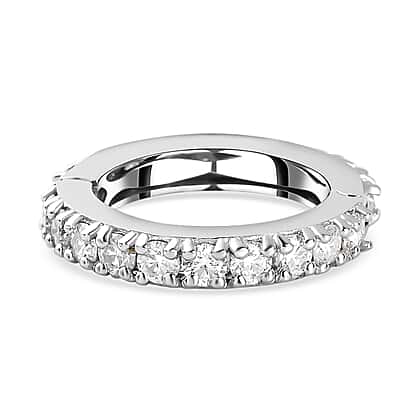 Create a sparkling addition to your personality with the shimmer of this Moissanite full eternity band ring that everyone will covet. Crafted by experts, this ring features a full eternity pattern, symbolising a powerful message and draping your finger in ecstasy. This ring is channelled with round faceted-cut moissanite pieces around the circular shank, exuding a diamond-like shimmer on each onlooker. The hinged side of this ring enhances the comfort of wearing this ring every day. Get this ring or gift it to someone special for a radiant appearance.