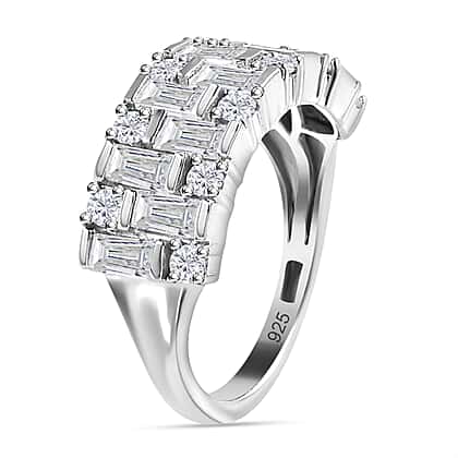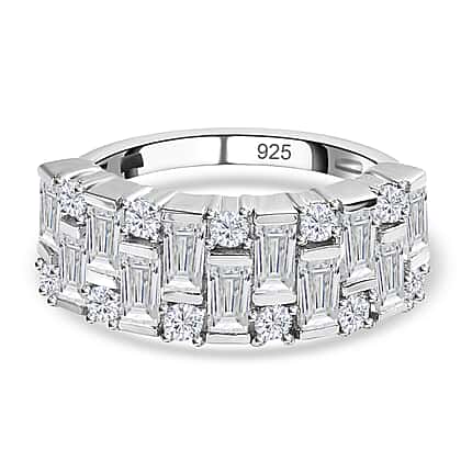 Moissanite Half Eternity Ring in Platinum Overlay Sterling Silver 1.53 Ct.