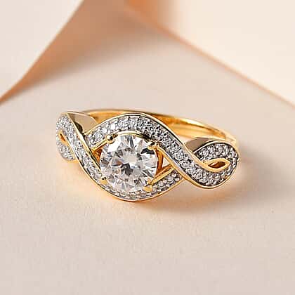 Moissanite Infinity Ring in 18K Yellow Gold Vermeil Plated Sterling Silver 1.30 Ct.