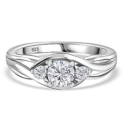 Moissanite Infinity Three Stone Ring in Platinum Overlay Sterling Silver