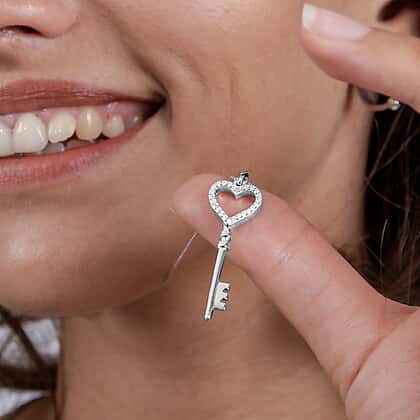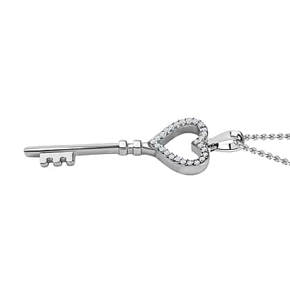 Moissanite Key Pendant with Chain (Size 20) in Platinum Overlay Sterling Silver