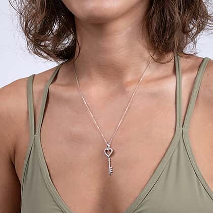 - This beautiful key pendant in sterling silver with luxurious platinum plating displays a brilliant shine that will catch the eye.