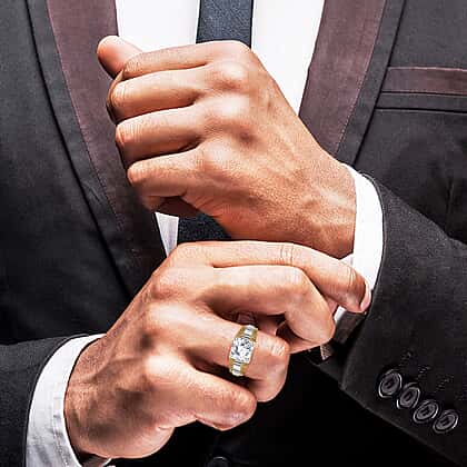 When it comes to jewellery, why should women have all the fun? Exactly! So here is a Moissanite Solitaire Ring for the men who like to carry a little bling on their skin when they step out. The centrepiece is prong mounted on a silver-based 18K Vermeil Yellow Gold decoration.