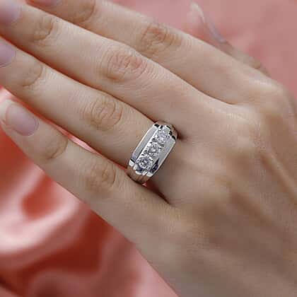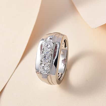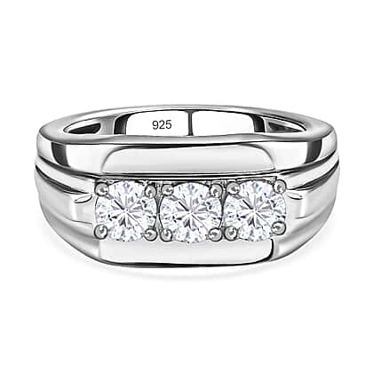 Boos your bold and solid personality by draping this moissanite men's ring daily and creating a statement at each gathering. Casual, formal or partywear, this moissanite ring will enhance each look you wish and choose. Crafted using solid 925 sterling silver, this ring's reliable reverse tapered shank makes the head appear more prominent, pronged with three round faceted-cut moissanite pieces. Get this for yourself or gift it to someone special.