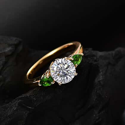 Moissanite & Natural Chrome Diopside Solitaire Ring in 18K Vermeil Yellow Gold Plated Sterling Silver 1.52 Ct.