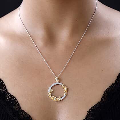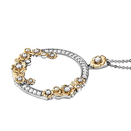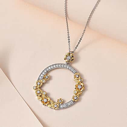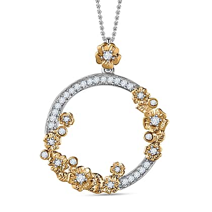 Moissanite Pendant with Chain (Size 20) in Two-Tone Plated Sterling Silver