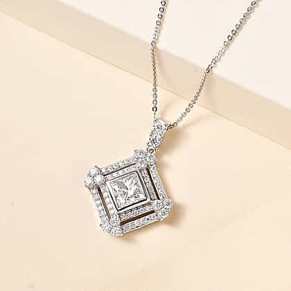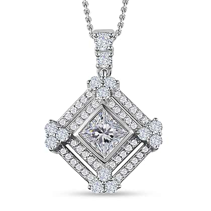 Moissanite Pendant with Chain (Size 20) Platinum Overlay Sterling Silver 1.95 Ct, Silver Wt 5.82 Gms