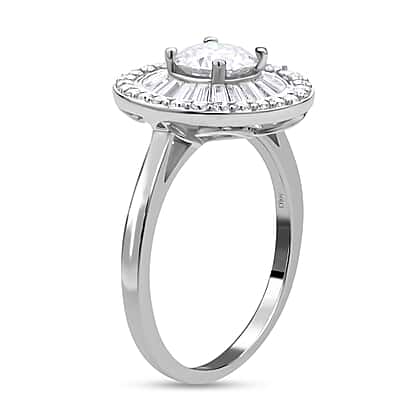 Moissanite Ring (100 Facets) in Rhodium Overlay Sterling Silver 2.09 Ct