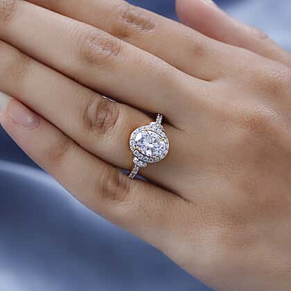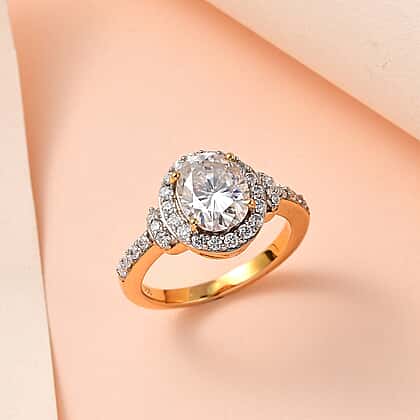 Moissanite Ring in 18K Vermeil Yellow Gold Plated Sterling Silver 2.27 Ct.