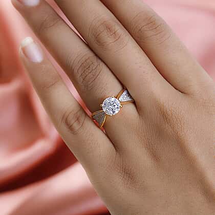 Moissanite Ring in 18K Yellow Gold Vermeil Plated Sterling Silver 2.57 Ct.