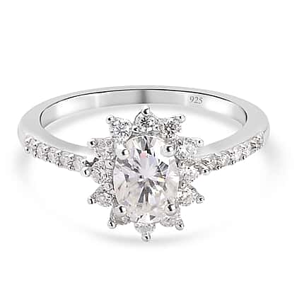 Moissanite Ring in Platinum Overlay Sterling Silver 1.300 Ct.