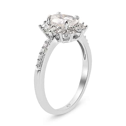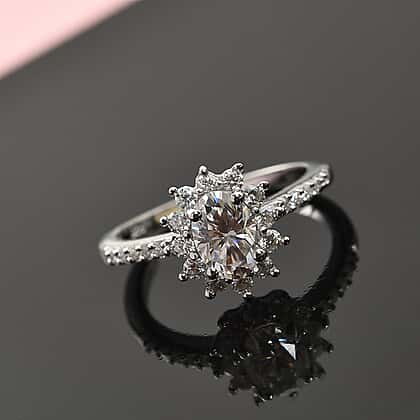 Moissanite Floral Halo Ring in Platinum Plated Sterling Silver 1.3 Ct.