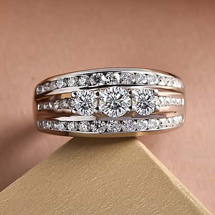 Moissanite Ring in Platinum Overlay Sterling Silver 1.42 Ct.
