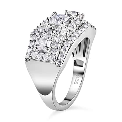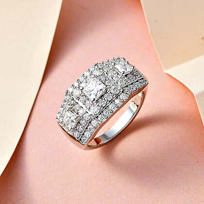 Moissanite Ring in Platinum Overlay Sterling Silver 1.76 Ct.