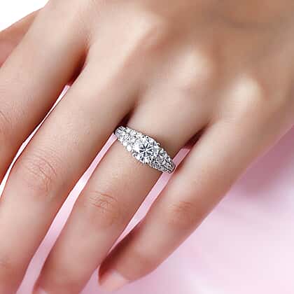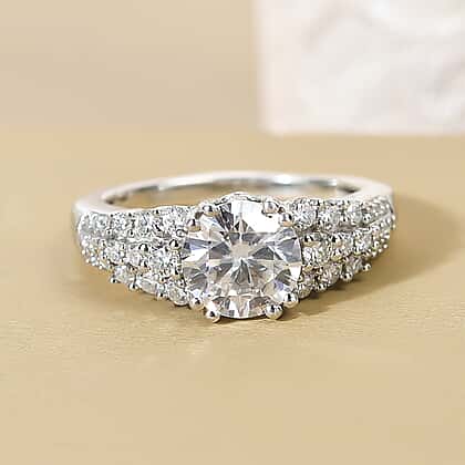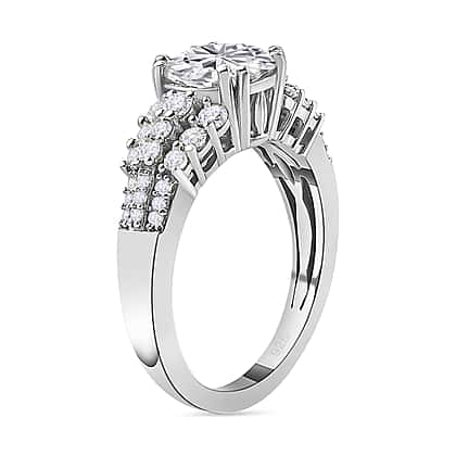 Moissanite Ring in Platinum Overlay Sterling Silver 1.98 Ct.